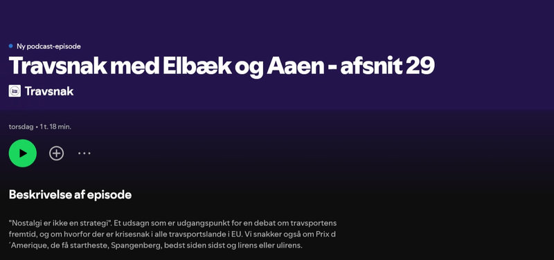 Podcast-redaktør henrik Dyhrberg har igen haft Zoom-besøg af panellisterne Søren Aaen og Jesper Elbæk, og er således klar med en ny "Travsnak"-podcast.