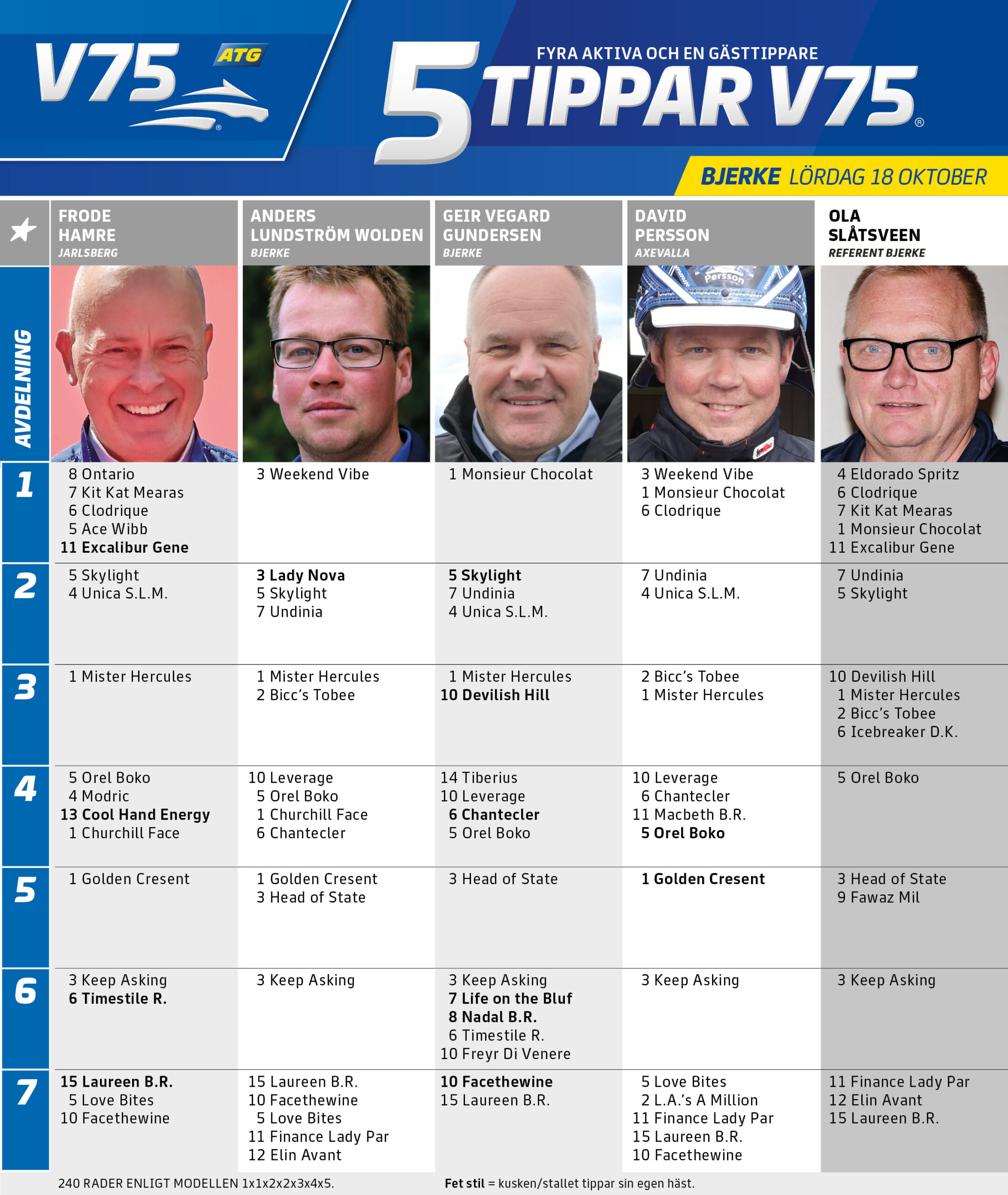 V75 Bjerke lørdag 18. oktober - "5 tippar V75"