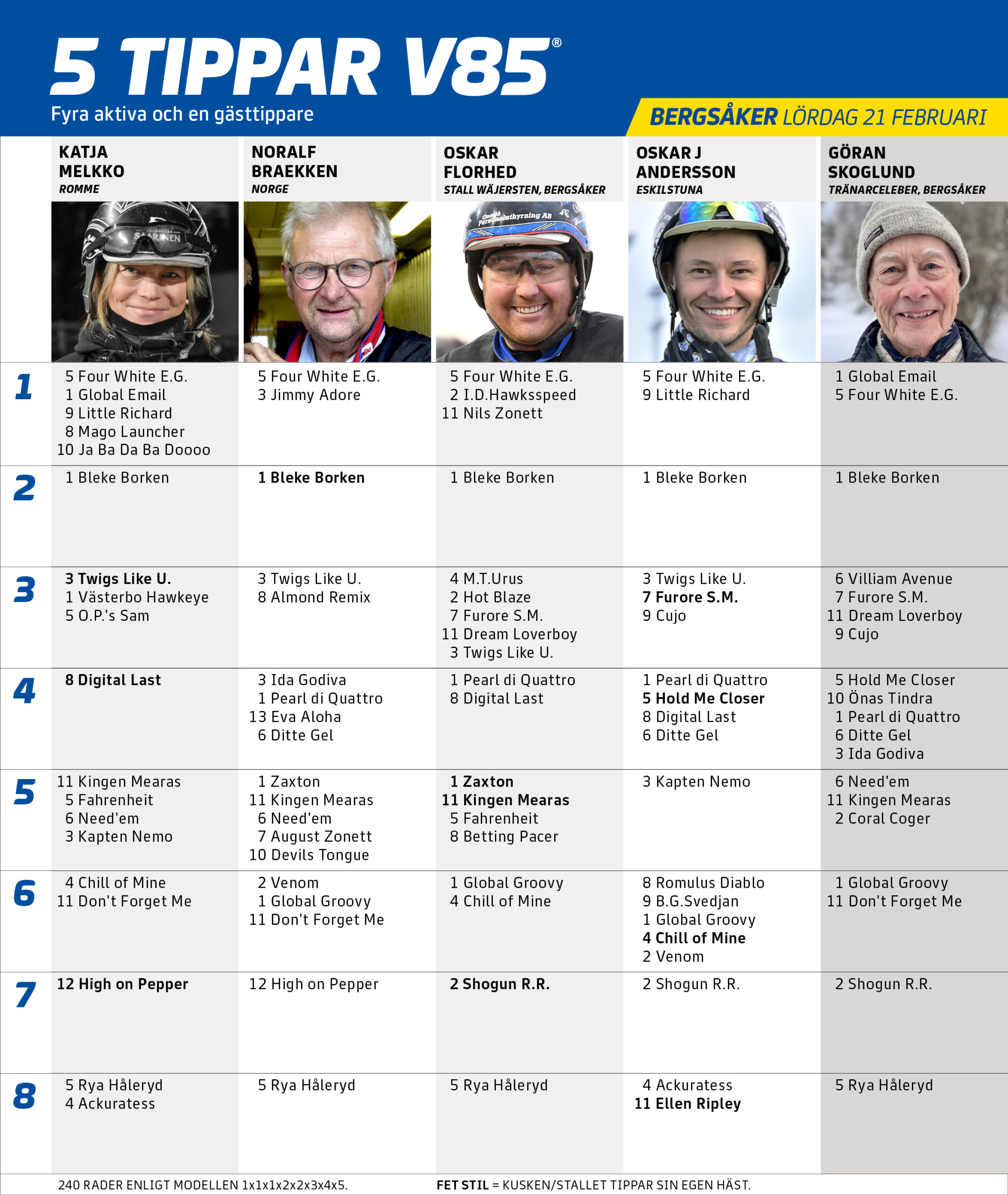 V85 Bergsåker lørdag 21. februar - "5 tippar V85"